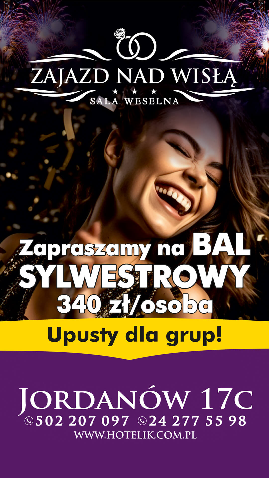 Przywitaj Nowy Rok razem z nami. Gwarantowana szampańska zabawa w doborowym towarzystwie. Niech ta noc będzie wyjątkowa. Nie czekaj. Zarezerwuj już dziś. Ilość miejsc ograniczona.